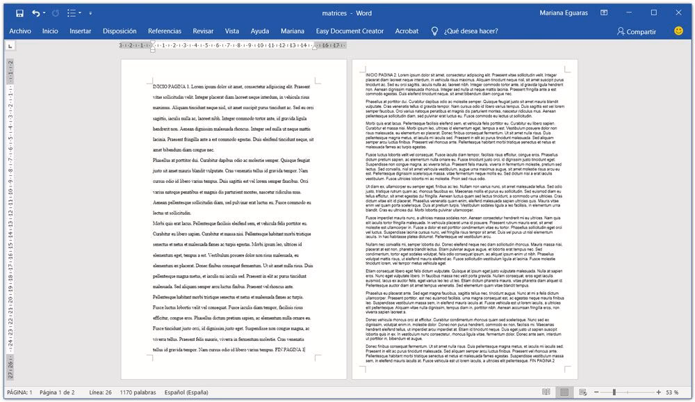 • Los márgenes del documento.