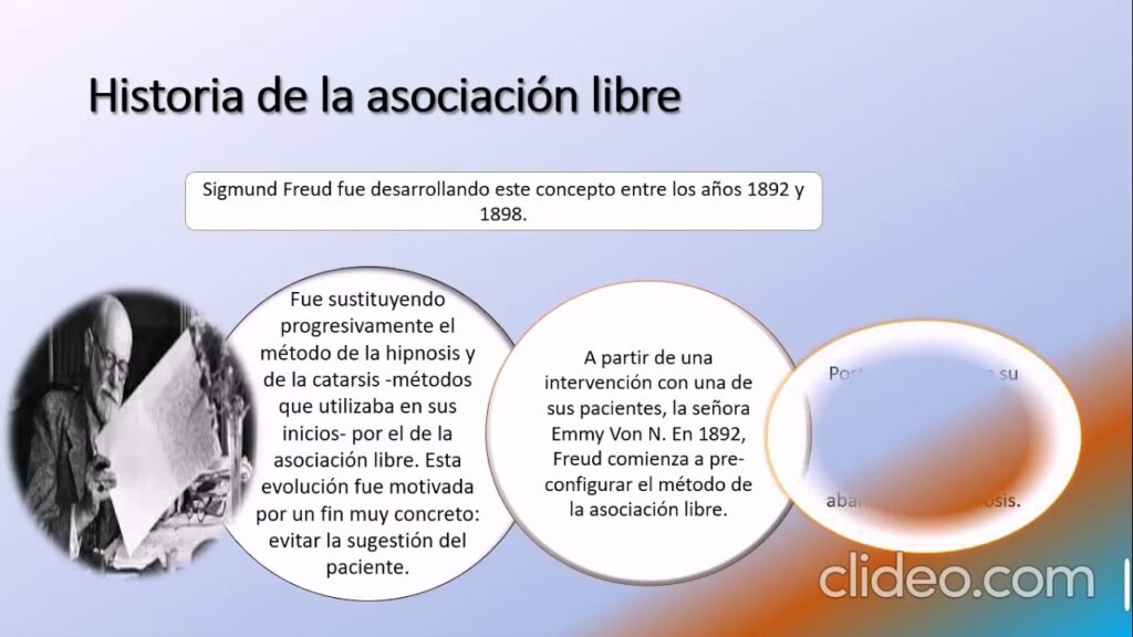 La técnica de asociación libre fue desarrollada por Sigmund Freud, el padre del psicoanálisis, a finales del siglo XIX. Inicialmente, Freud utilizaba la hipnosis para acceder al inconsciente de sus pacientes, pero pronto se dio cuenta de sus limitaciones y de la variabilidad en la capacidad de los pacientes para ser hipnotizados. Buscando una alternativa más universal y menos directiva, observó que sus pacientes a menudo revelaban material significativo cuando se les animaba a hablar sin restricciones, diciendo lo primero que les venía a la mente, sin importar cuán trivial, absurdo o vergonzoso pudiera parecer.