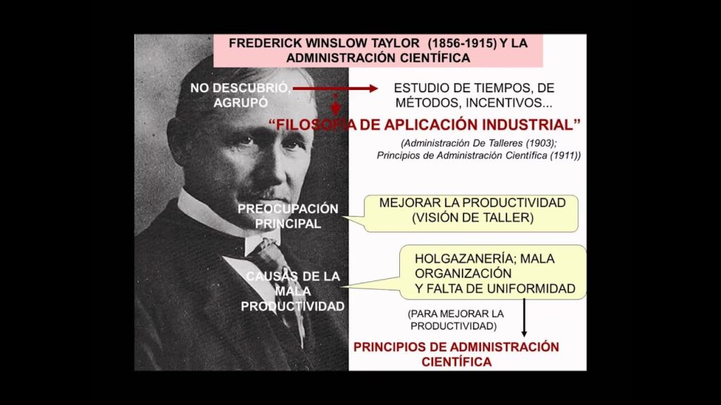 Frederick Winslow Taylor (1856-1915) fue un ingeniero e inventor americano, ampliamente reconocido como el padre de la administración científica. Sus innovadoras ideas y principios revolucionaron la gestión industrial a principios del siglo XX, buscando la máxima eficiencia y productividad en los procesos de trabajo.
