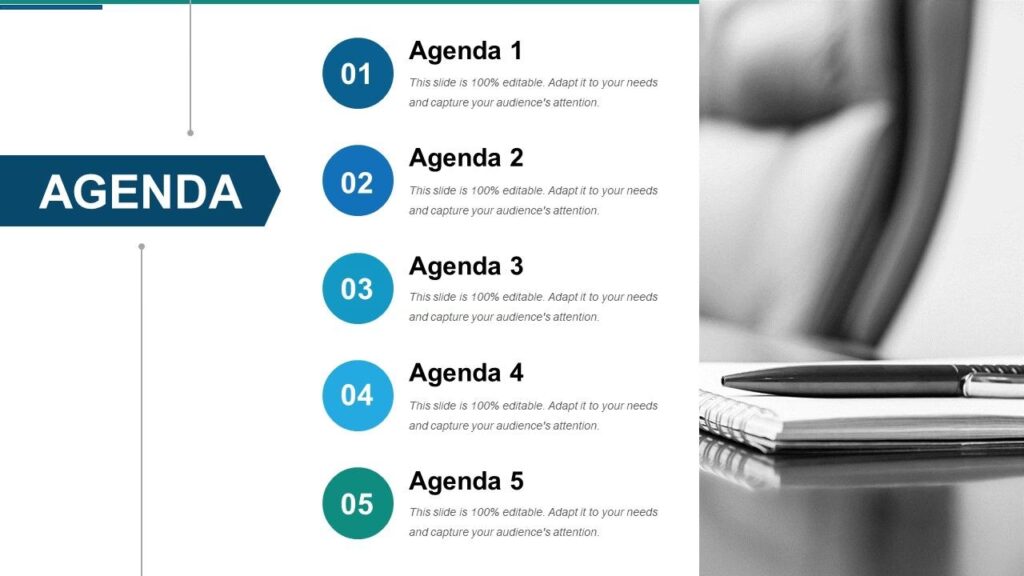 5. Tu Audiencia la Apreciará: En última instancia, una presentación es para tu audiencia. El estilo profesional y pulido de tu agenda PPT hará que tu contenido luzca más interesante, creíble y fácil de seguir, capturando su atención y respeto.