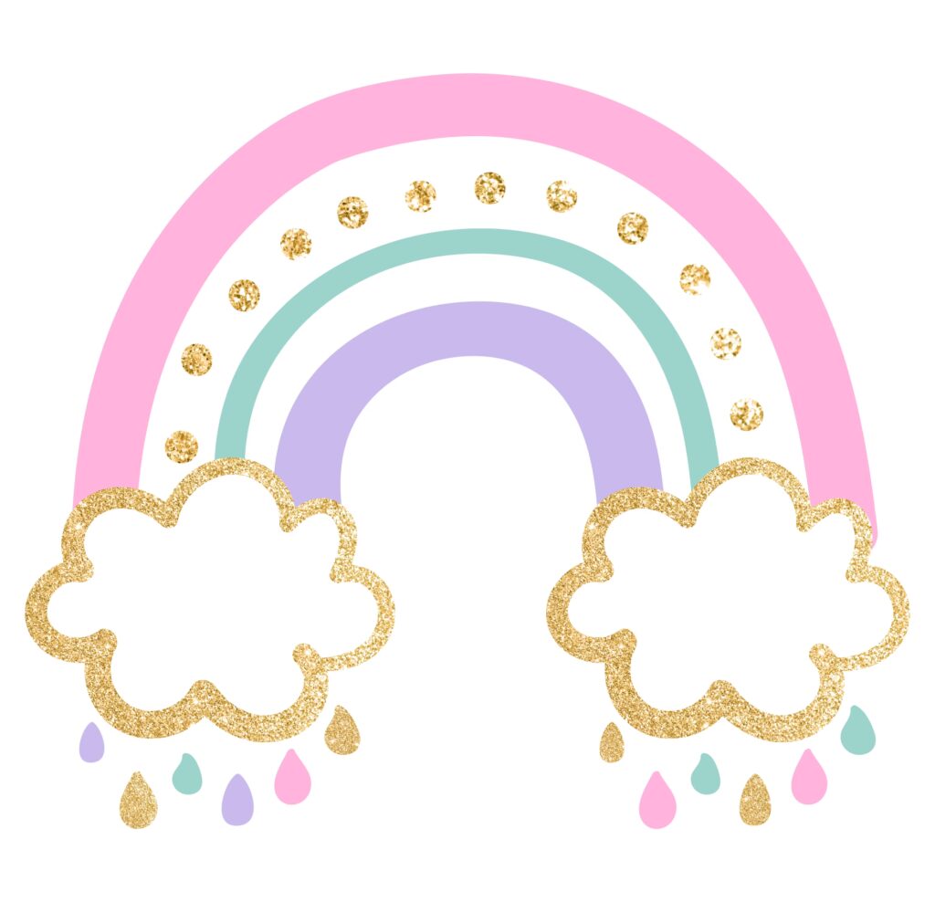 - Figuras de Fondant: Pequeñas figuras hechas de fondant, como nubes con gotas de lluvia de colores o un pequeño arcoíris en 3D, pueden ser el toque distintivo.
