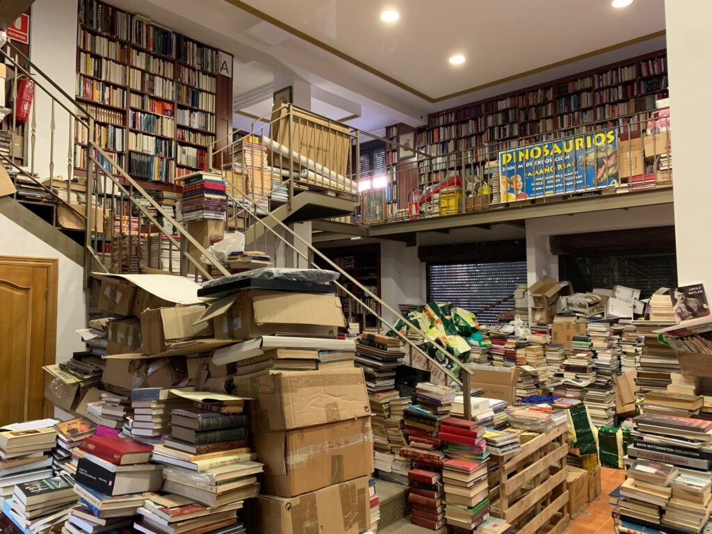 Cruzar la puerta de Cajón Desastre es adentrarse en el paraíso perfecto para cualquier bibliófilo. La modesta fachada oculta una realidad asombrosa: un laberinto de estanterías repletas de cientos de miles de ejemplares, tomos apilados uno sobre otro que invaden pasillos y escaleras. Entre este mar de papel, máquinas de escribir antiguas y viejas prensas de imprenta añaden un toque nostálgico y auténtico. Esta es la cara visible de la librería, pero su verdadero tesoro se oculta en un almacén anexo de más de 200 metros cuadrados, distribuidos en dos plantas y varias salas. Allí, sin un metro de pared sin estanterías ni un metro de suelo sin cajas o pilas de libros, reside probablemente uno de los mayores almacenes de libros raros y curiosos de España.