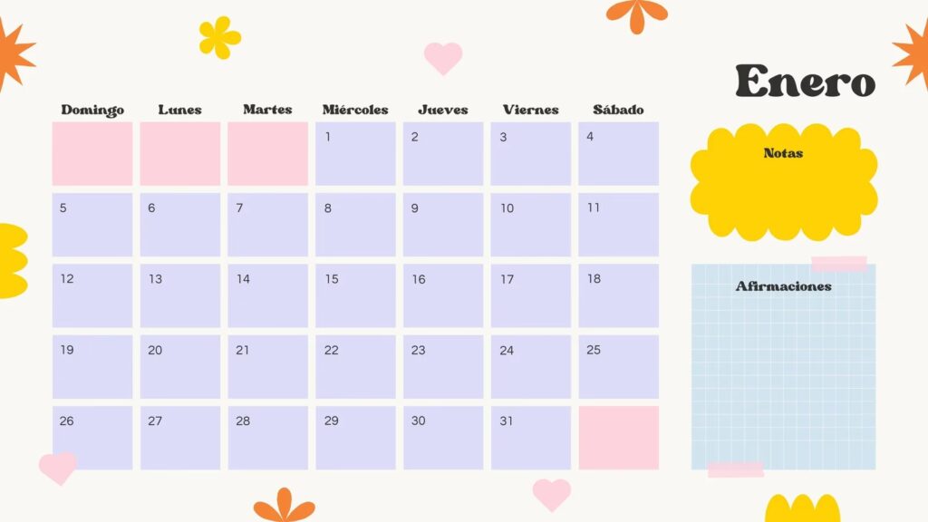 • Cartulina y papel de colores: Sirven como base resistente para el calendario y para crear secciones, resaltes o decoraciones que capten la atención.