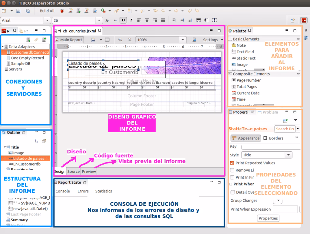 - Aunque puedes usar JasperReports con cualquier IDE de Java, herramientas como Jaspersoft Studio (basado en Eclipse) o NetBeans ofrecen entornos gráficos integrados que facilitan enormemente el diseño y la gestión de los informes JRXML.