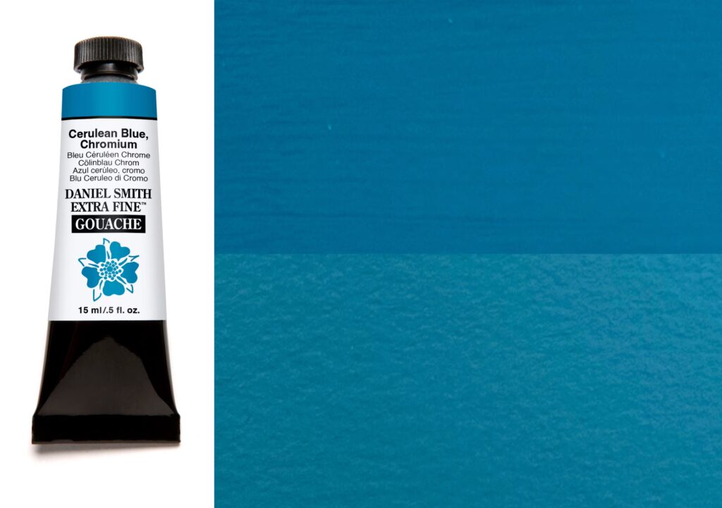Azul Cerúleo Genuino (PB 35)Matiz azul verdoso, luminoso, cubriente, estable, costoso.Es el referente. Tiene una coloración más “polvorienta” que el cian, no aumenta su croma al salir del tubo.