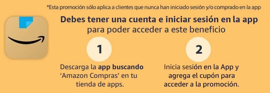 Cupón Primera Compra (App)$100 de descuento en compras desde $400Descargar App Amazon y registrarse como nuevo usuarioCasi todo el año, para nuevos usuarios