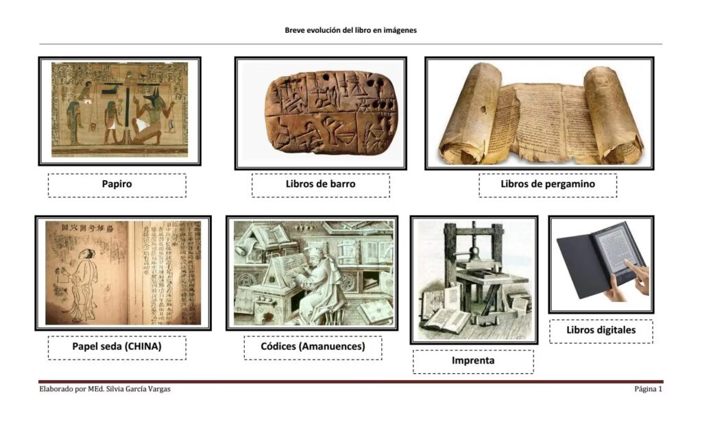 Los sumerios utilizaron tablillas de arcilla para sus registros cuneiformes, consideradas las primeras formas de “libros” duraderos. Antes de esto, la transmisión era oral, y otros materiales como la madera o el bambú se usaron en diferentes culturas, como la china.