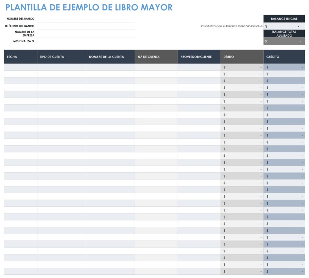 - Establezca Páginas o Hojas para Cada Cuenta: Cada cuenta de su Plan de Cuentas tendrá su propia "página" o sección dentro del Libro Mayor General. En un sistema manual, esto sería una hoja de libro mayor. En una hoja de cálculo (como Excel, que es una opción popular para plantillas), cada cuenta podría tener una pestaña o una sección designada.