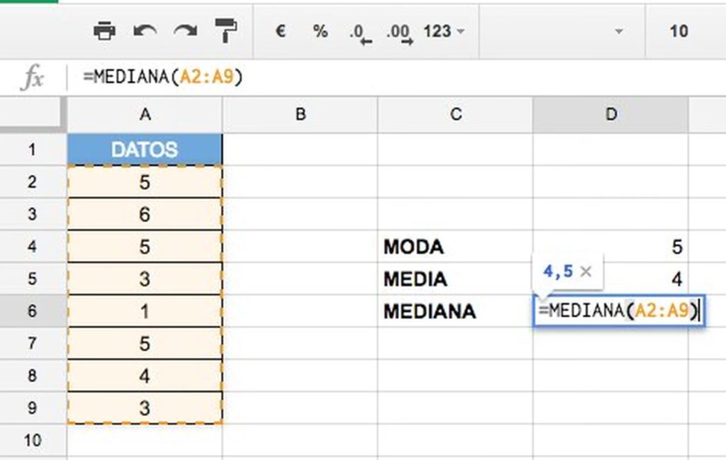 Claro. Si tienes los valores 5, 6, 7, 8, 9 en las celdas A1 a A5, la fórmula para calcular su promedio sería =PROMEDIO(A1:A5), lo que resultaría en 7.