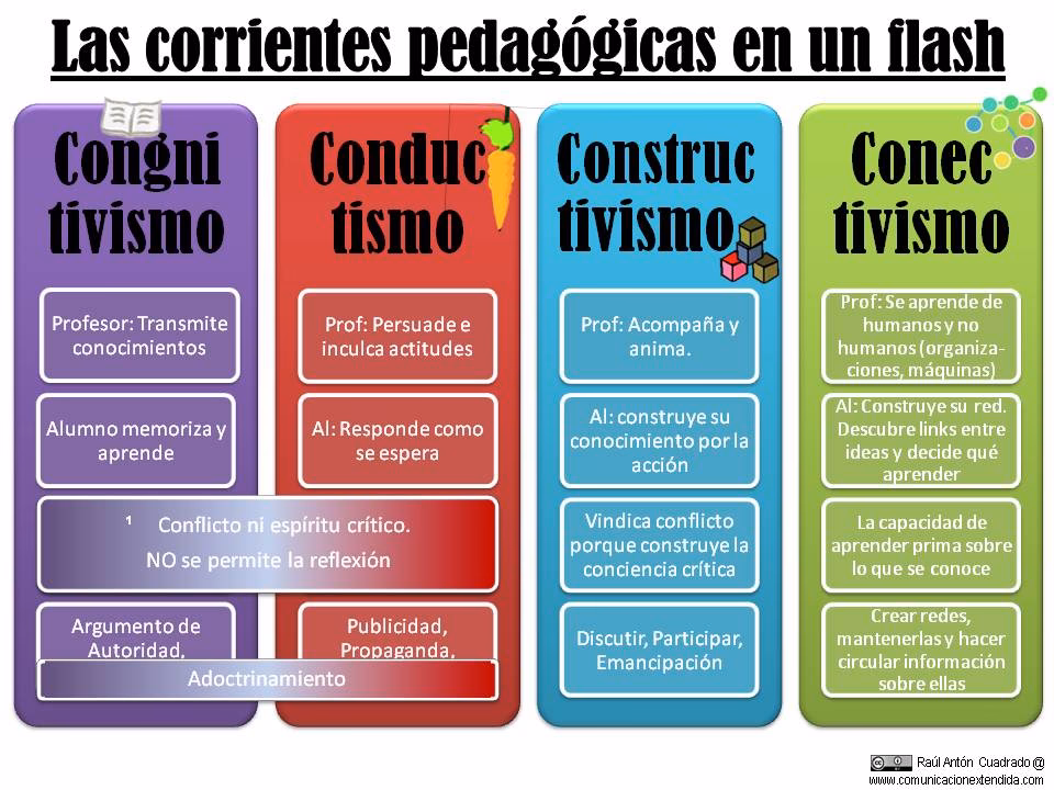 | Cognitivista | Organizador de información, facilitador de procesos mentales. | Procesador activo de información, constructor de esquemas. | Procesos mentales (atención, memoria, razonamiento), comprensión. | Mapas conceptuales, estrategias de estudio, resolución de problemas, metacognición. |