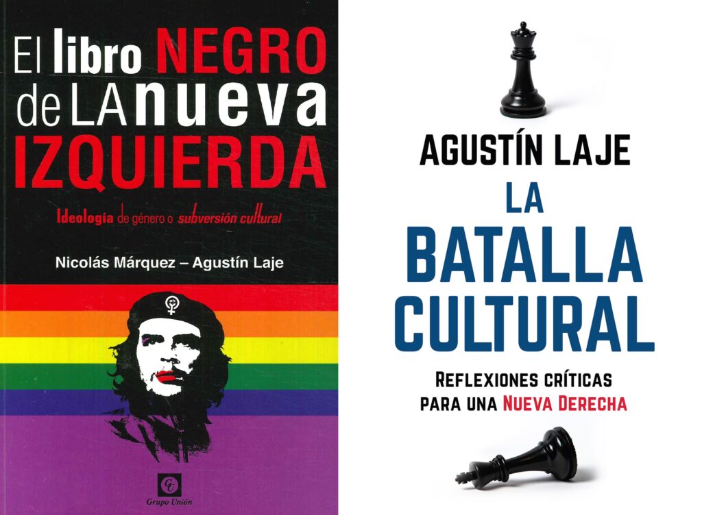 - "El libro negro de la nueva izquierda: Ideología de género o subversión cultural" (2016): también con Nicolás Márquez, un best-seller internacional que postula la existencia de un "neomarxismo" que ha cambiado la lucha de clases por una "lucha de géneros". En esta obra, Laje y Márquez critican severamente el feminismo y lo que denominan "homosexualismo ideológico", llegando a afirmar que cierto feminismo apoya la causa pedófila, lo que generó una fuerte polémica.