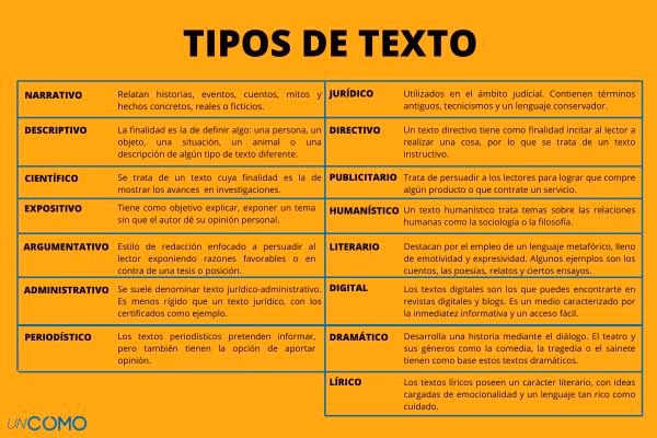 | Tipo de Texto | Función Principal | Características Clave | Ejemplos Comunes |