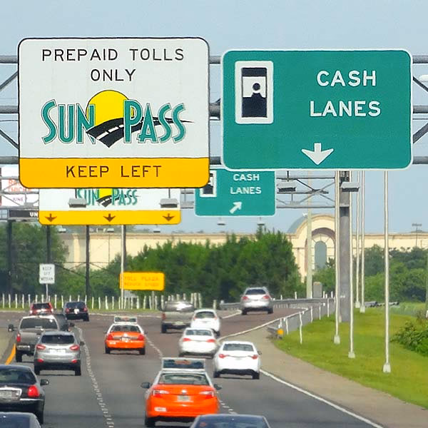 Recomendación: Siempre asume que el efectivo no será una opción en las autopistas de peaje de Florida. La dependencia del efectivo puede llevarte a carriles exclusivos para transpondedores, lo que resultará en una factura de Toll-by-Plate con recargos.