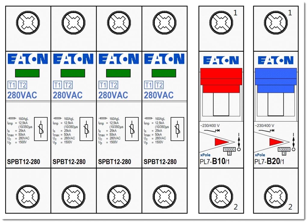 • Módulos eCAD: Estos son bloques de construcción digitales que representan componentes individuales de Eaton, como contactores, disyuntores, relés, arrancadores de motor, PLC y otros dispositivos de control y protección. Cada módulo contiene información eléctrica detallada, incluyendo puntos de conexión, características de funcionamiento y simbología estándar, lista para ser insertada en esquemas eléctricos.