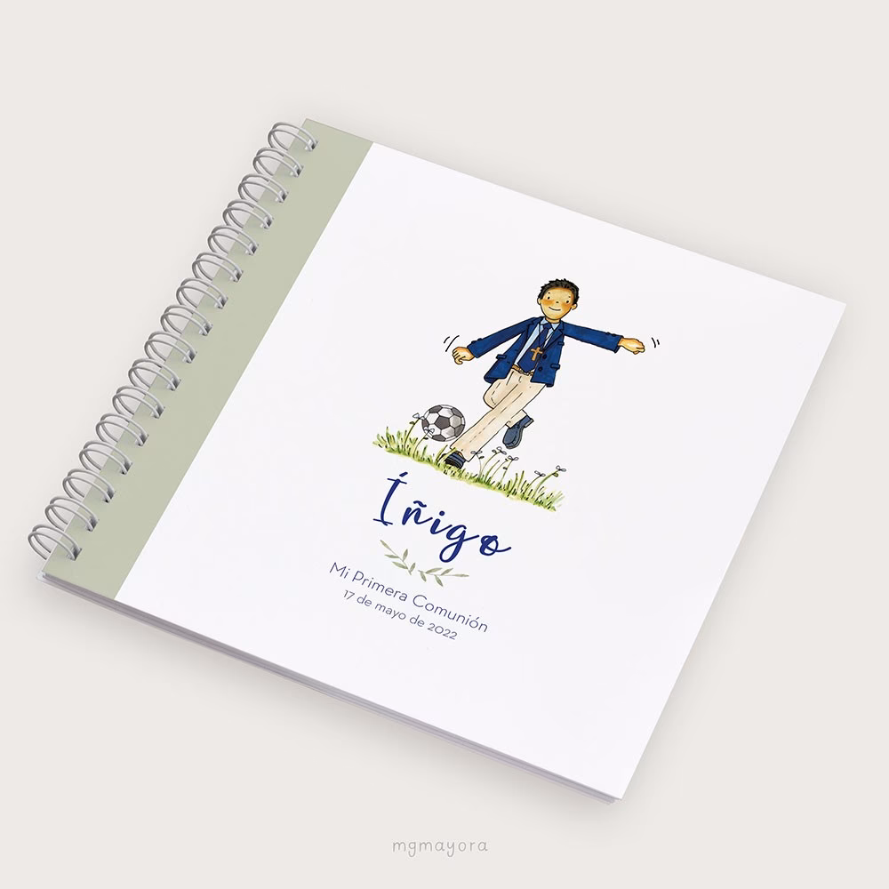 - Diseño de la portada: Con el nombre del niño, la fecha de la Comunión, ilustraciones que reflejen sus pasiones (deportes, animales, cuentos de hadas, etc.), o incluso una fotografía del protagonista.