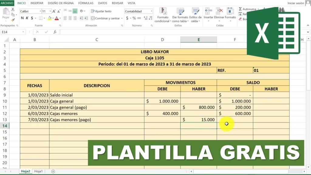 - Fecha de la Operación: Es fundamental registrar cada entrada con su fecha correspondiente para mantener una relación cronológica precisa de todas las operaciones que afectan esa cuenta.