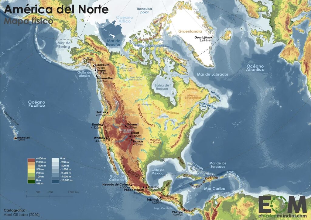 América del Norte se extiende desde las regiones árticas del norte de Canadá y Alaska hasta las subtropicales de Florida y México. Esto da lugar a una vasta gama de climas: