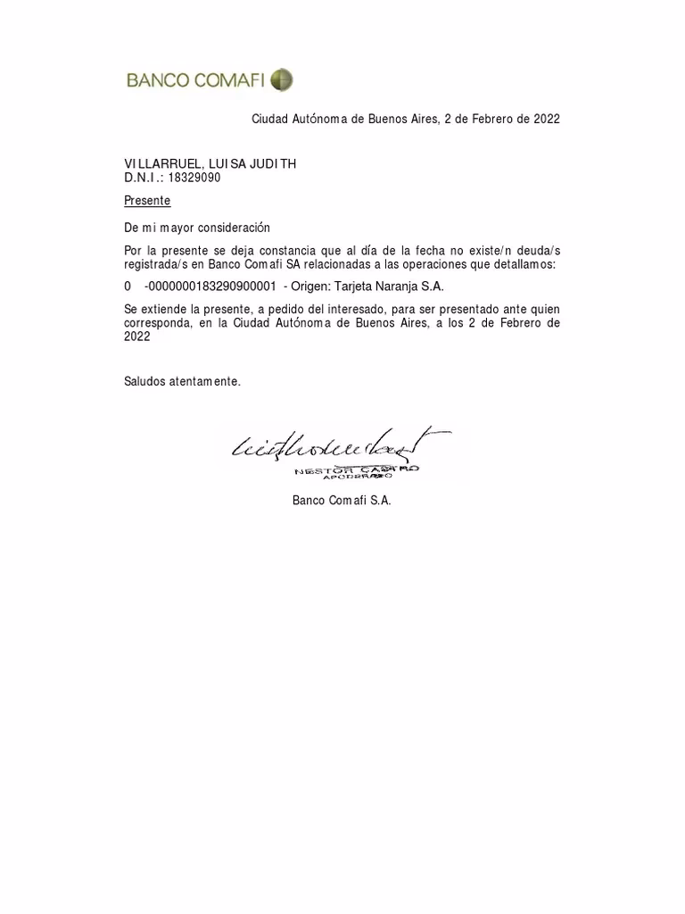 - Identificación Personal: Tu número de DNI (Documento Nacional de Identidad) o CUIT (Clave Única de Identificación Tributaria). Estos son los datos primarios para que Comafi Soluciones pueda localizar tu cuenta.
