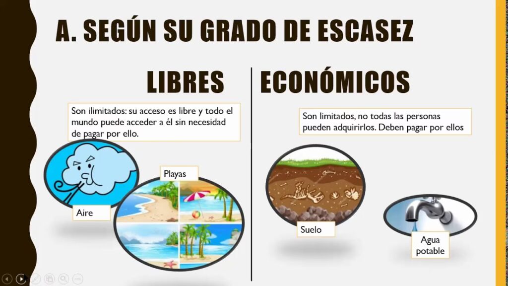 - Bienes Libres o Gratuitos: Son aquellos que se encuentran en abundancia en la naturaleza o que, para obtenerlos, no se requiere ninguna actividad económica significativa (es decir, no hay costo de oportunidad asociado a su obtención). Ejemplos clásicos son el aire que respiramos o la luz del sol. No son objeto de estudio de la economía porque no hay escasez ni necesidad de asignación de recursos.