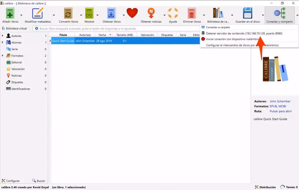 - Selecciona los libros que deseas enviar en tu biblioteca de Calibre.