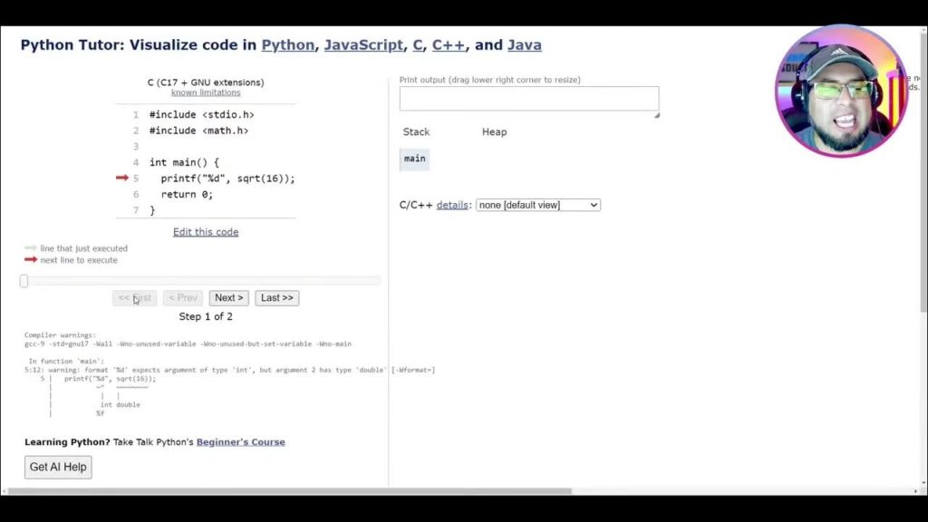 #include <stdio.h> #include <math.h> #include <errno.h> // Para trabajar con errores int main() { double neg_num = -4.0; double result = sqrt(neg_num); if (isnan(result)) { printf("Error: Intento de calcular la raiz cuadrada de un numero negativo.\n"); // Opcional: imprimir el valor de errno para mas detalles if (errno == EDOM) { // EDOM indica error de dominio printf("errno indica error de dominio (EDOM).\n"); } } else { printf("La raiz cuadrada de %.2lf es %.2lf\n", neg_num, result); } return 0; } Para la depuración, herramientas como gdb (GNU Debugger) son invaluables. gdb te permite ejecutar tu programa paso a paso, inspeccionar el valor de las variables en cualquier momento y analizar el flujo de ejecución. Si obtienes un resultado inesperado de una función de <math.h>, puedes usar gdb para verificar los valores de entrada a la función y el valor devuelto, lo que te ayudará a identificar si el problema está en tus datos de entrada o en una interpretación incorrecta del resultado.