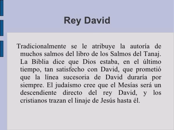 - Inspiración o tema principal: Un libro podría ser 'de David' porque él es el personaje central o la inspiración para su contenido, como en el caso de Samuel.
