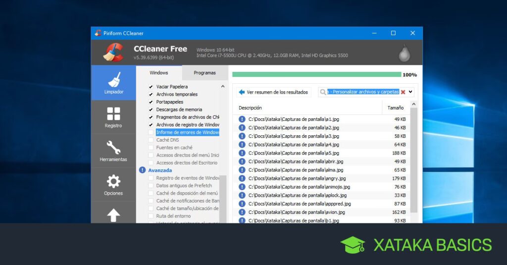 | Característica | CCleaner (Borrar Espacio Libre) | Liberador de Espacio en Disco de Windows |