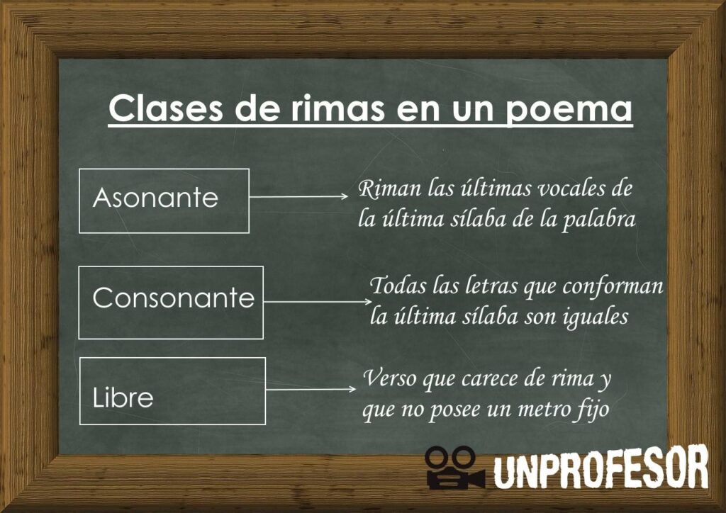 - Rimas Oxítonas o Agudas: Ocurren cuando la última palabra del verso es aguda, es decir, la sílaba acentuada es la última. Por ejemplo: corazón / canción.