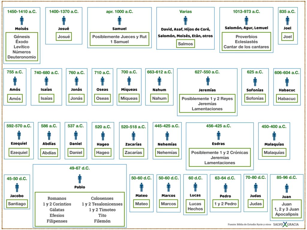 Es importante señalar que, para algunos libros, la autoría es anónima o debatida, y la tradición les asigna autores basándose en indicios internos o en la creencia popular. En otros casos, los libros pueden haber sido compilaciones o editados por escribas posteriores, pero siempre manteniendo la esencia del mensaje original.
