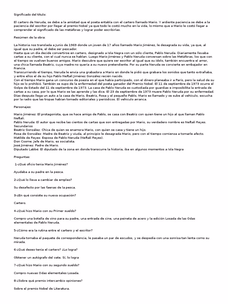 | Basada en | Novela "Ardiente paciencia" de A. Skármeta | Novela "Ardiente paciencia" de A. Skármeta | Período de clandestinidad de Neruda (1948) |