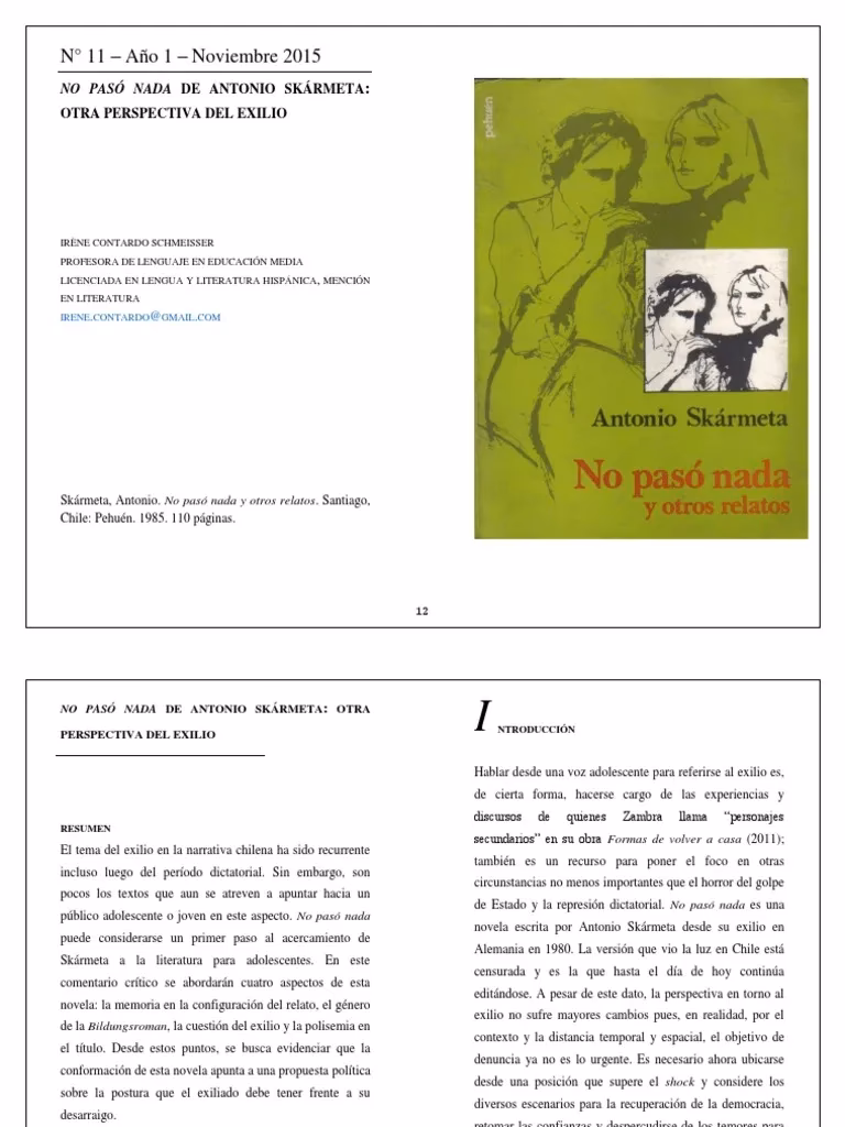En definitiva, “No Pasó Nada” no es solo la historia de Lucho; es una ventana a la maestría narrativa de Antonio Skármeta. Su estilo, caracterizado por la sencillez, la agilidad, el humor y una profunda humanidad, permite que el lector no solo comprenda el proceso de adaptación y autodescubrimiento de un joven exiliado, sino que lo sienta en lo más profundo. Es una obra que, a través de una prosa envolvente y directa, nos invita a reflexionar sobre la identidad, la diversidad y la importancia del respeto mutuo, dejando una huella duradera y una comprensión más rica de la experiencia humana.